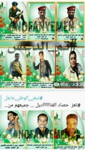 وفي تعز لقي مصرعه عدد من القيادات من تطلق عليهم مليشيات الحوثي بالقناديل … وجميعهم من منطقه واحدة بينهم قيادات ، حيث لقي كلاً من :