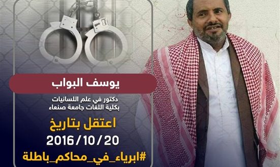 يأتي هذا تزامناً مع استمرار مليشيا الحوثي إخضاع 36 من المختطفين المدنيين بينهم أكاديميون وباحثون في سجونها بصنعاء، لمحاكمات هزلية بدأتها منذ أبريل من العام الماضي 2017.