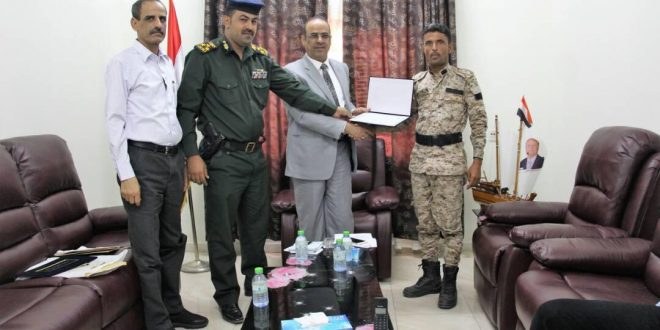 كرم نائب رئيس الوزراء وزير الداخلية، احمد الميسري، اليوم الخميس، قائد نقطة دوفس بمحافظة أبين، محمد عبدالرب الكلدي، تقديرا للنجاحات التي حققتها النقطة في ضبط الكثير من عمليات تهريب الاسلحة والمتفجرات والممنوعات.