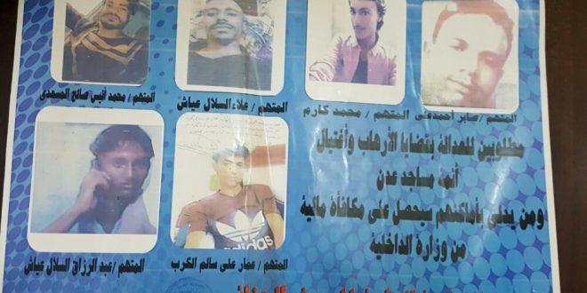 ونشرت إدارة البحث الجنائي بعدن قائمة لعدد من المطلوبين على خلفية الاغتيالات ودعت المواطنين للإبلاغ عنهم.