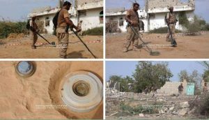 وفي ذات السياق انتزعت فرق الهندسة التابعة للمنطقة العسكرية الخامسة عشرات الألغام والعبوات الناسفة التي خلفتها المليشيات المتمردة قبل إندحارها من تلك الأحياء لإعاقة تقدم قوات الجيش الوطني .