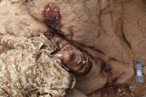 وما زال هناك الكثير من قتلى الحوثيين سقطوا في منطقة التماس لم يتمكنوا من اخلائها .