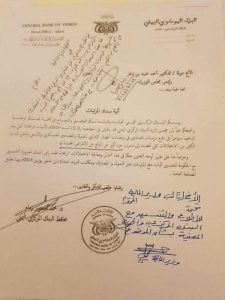 وعقب رسالة البنك، وجه رئيس الحكومة بن دغر، وزارة المالية بالعمل على اتخاذ اليات للعمل على ما جاء في رسالة البنك المركزي.