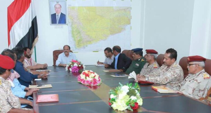 عقد نائب رئيس الجمهورية الفريق الركن علي محسن صالح اليوم الجمعة اجتماعاً بالقيادات الأمنية والعسكرية لمحافظة شبوة بحضور محافظ اللواء علي راشد الحارثي وعدد من وكلاء المحافظة.