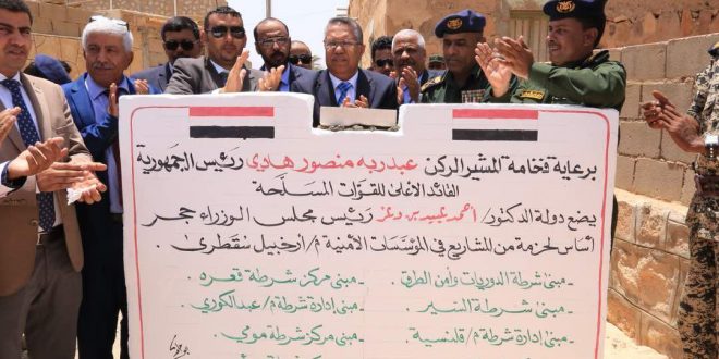 وضع رئيس مجلس الوزراء الدكتور أحمد عبيد بن دغر ،اليوم،ومعه محافظ محافظة أرخبيل سقطرى رمزي محروس، حجر أساس لحزمة من المشاريع في المؤسسات الأمنية بمحافظة أرخبيل سقطرى، بتكلفة تقدر بــ 700 مليون ريال بتمويل حكومي.