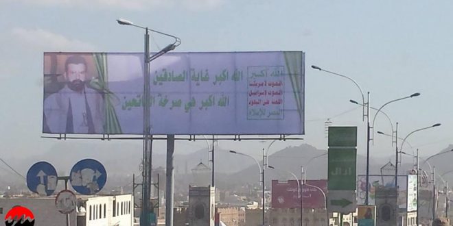 وتنتشر المئات من الصور العملاقة ل “حسين بدر الدين الحوثي” في شوراع صنعاء، والمحافظات الواقعة تحت سيطرة الجماعة وبشكل كبير احتفاءً بالذكرى ال 14 لمقتله برصاص الجيش الحكومي عام 2004م والتي طبعت بمبالغ مالية باهظة تم تسديدها من حساب وزارة الأشغال العامة.