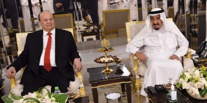 من جانبه عبر الملك سلمان بن عبد العزيز عن سروره باستقبال أخيه فخامة الرئيس عبدربه منصور هادي مؤكدا موقف المملكة الدائم والداعم لليمن وشرعيته الدستورية ممثلة بفخامة الرئيس عبدربه منصور هادي.