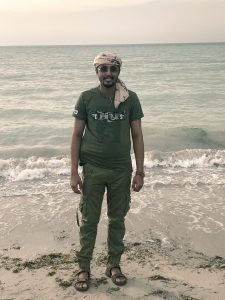 ونشر “القديمي” صورة له على موقع التدوين المصغر”تويتر” وعلق عليها قائلاً:”من موطني وارضي التي شردت منها 4 سنوات على ساحل الحديدة وقريبا داخل المدينة.