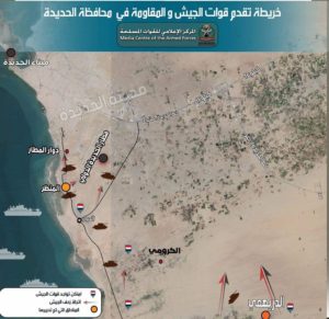 وأحكمت قوات الجيش والمقاومة سيطرتها على مناطق استراتيجية جديدة في المدخل الجنوبي لمدينة الحديدة غربي اليمن إضافة إلى الدوار الكبير المؤدي إلى المطار، فيما تشتد المواجهات بين المقاومة والميليشيات في شارع الخمسين المتفرع من الدوار لتقترب من البوابة الغربية للمطار وتضيق الخناق على ميليشيات الحوثي الإرهابية.