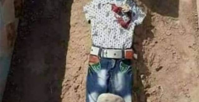 وتمثلت الصورة بملابس العيد على قبر طفل استشهد بقذيفة حوثية في تعز، حيث وضعتها أمه التي كانت تتمنى رؤية طفلها يرتديها ويفرح كباقي الأطفال، إلا أن العيد جاء وقد أنهت قذيفة حوثية روح طفلها.