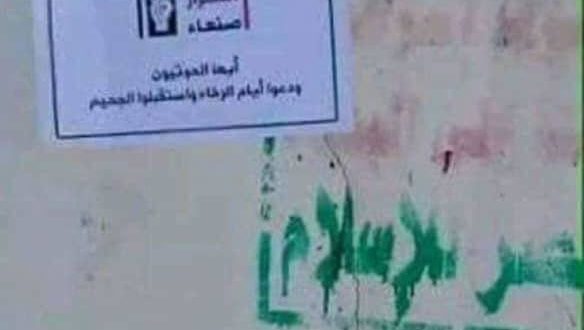 تداول ناشطون على مواقع التواصل الاجتماعي صورا للافتات ورقية وشعارات مناوئة للحوثيين تغزوا شوارع العاصمة صنعاء.