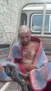 وتظهر صور المختطف منير الشرقي بعد ما القته العصابة الحوثية ما لحق به من التعذيب الوحشي حتى اصبحت الحروق تملئ جسده وفي حالة نفسية صعبة للغاية .