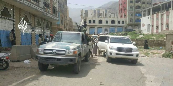 وشهدت تعز خلال الأسبوعين الماضيين مواجهات متقطعة بين قوات عسكرية تابعة لمحور تعز العسكري وكتائب “أبو العباس” التي تتمركز داخل الأحياء القديمة في المدينة، قبل أن يلتقي الرئيس هادي بقيادات الجيش في تعز ويشكل لجنة رئاسية لإنهاء المواجهات وتطبيع الأوضاع.