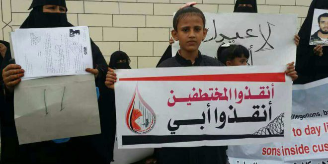 طالبت رابطة أمهات المختطفين بمحافظة عدن وأمهات المخفيين قسراً الحكومة ممثلة بوزير داخليتها أحمد الميسري، بالكشف عن مصير العشرات من المخفيين قسراً والمعتقلين تعسفياً والإفراج الفوري عنهم ومحاسبة المتسببين في اخفائهم وتعذيبهم.