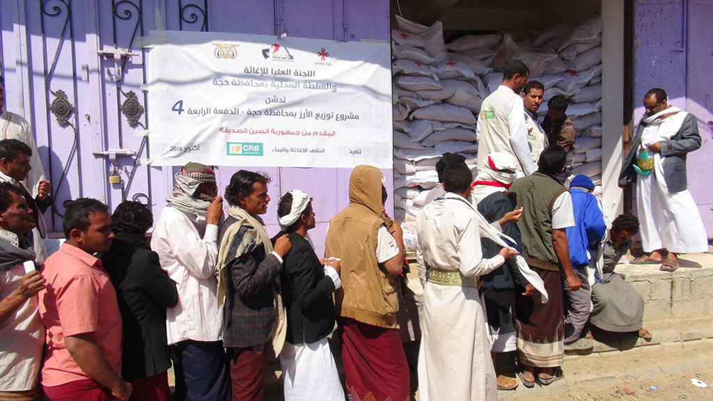 دشن وكيل محافظة حجة الشيخ عبد الكريم هرمس امس الأحد 28 اكتوبر توزيع مشروع الأرز الدفعة الرابعة المقدمة من جمهورية الصين الصديقة للنازحين من أبناء محافظة حجة.