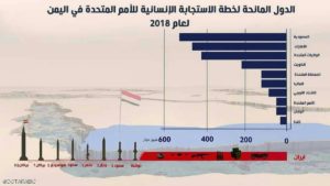 تصدرت السعودية والإمارات والولايات المتحدة قائمة الدول المانحة لخطة الاستجابة الإنسانية للأمم المتحدة في اليمن لعام 2018، في حين اقتصرت مساهمات النظام الإيراني في هذا البلد على إرسال الأسلحة لميليشيات الحوثي لتعميق أزمة اليمنيين.