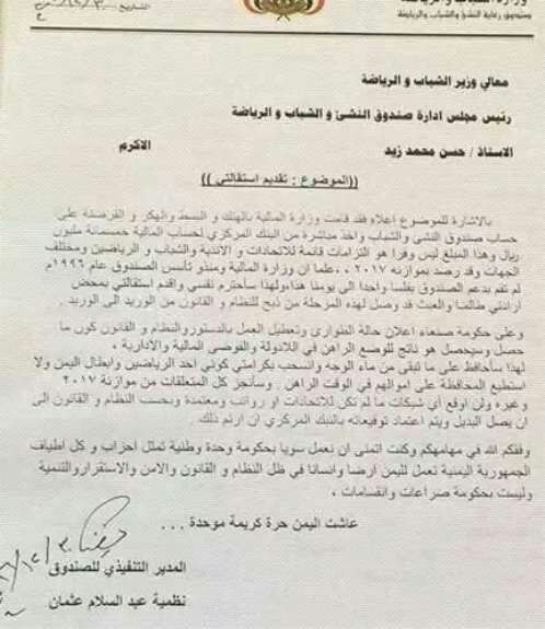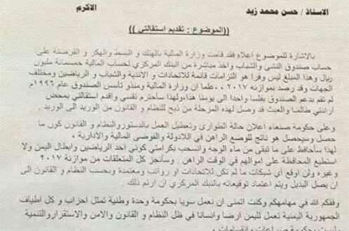 وقامت ميليشيات الحوثي بنهب المبلغ من حساب صندوق النشء والشباب بالبنك المركزي واخذ خمسمائة مليون من حسابات الاتحادات الرياضية والأندية باليمن.