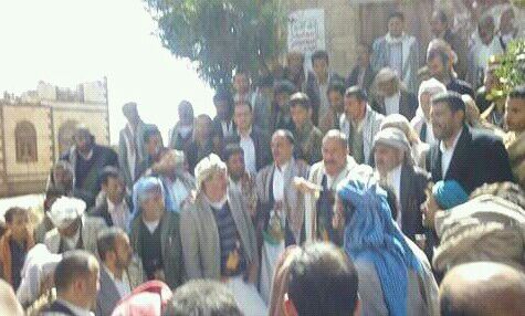 نظم العشرات من أبناء المحويت من أسرة ال السنحاني وقفة احتجاجية أمام بوابة المجمع الحكومي