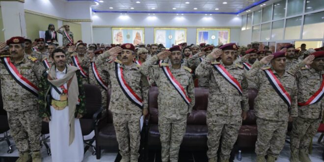 وأضاف بن عزيز “علينا أن نستعد جميعا للمعركة الحاسمة، والجيش مستعد لأداء واجبه الوطني من أجل كرامة اليمن واليمنيين الذين يعولون على المؤسسة العسكرية في خلاصهم من المليشيات الإرهابية الجاثمة على صدورهم”