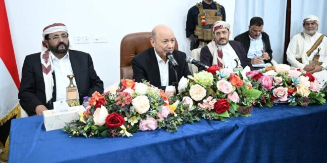 التقى فخامة الرئيس الدكتور رشاد محمد العليمي رئيس مجلس القيادة الرئاسي، ومعه أعضاء المجلس اللواء سلطان العرادة، والدكتور عبدالله العليمي، واللواء عثمان مجلي القيادات الرسمية والسياسية والشعبية في محافظة مأرب.
