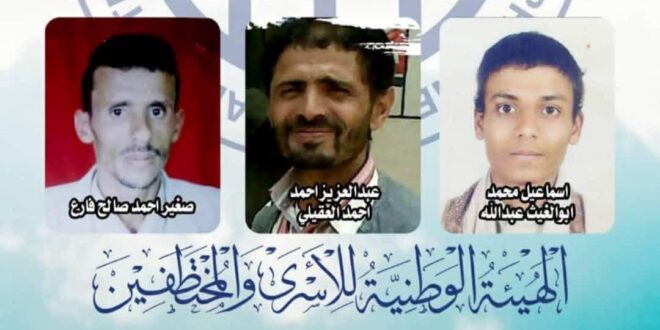 ادانت الهيئة الوطنية للأسرى والمختطفين بأشد العبارات، اليوم، مصادقة ما أسمتها “المحكمة العليا الحوثية” في صنعاء على قرارات إعدام جائرة بحق ثلاثة مختطفين هم: إسماعيل أبو الغيث، وصغير فارع، وعبدالعزيز العقيلي، ووصفتها بأنها “جريمة قانونية مكتملة الأركان”.