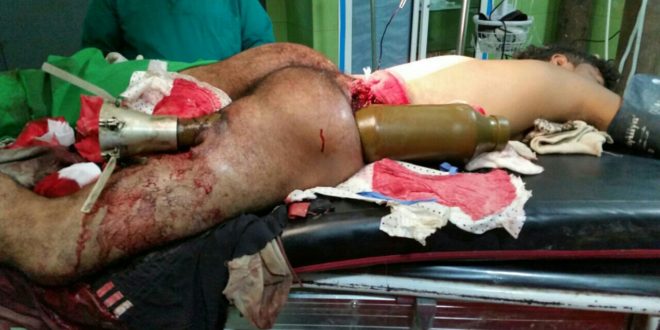 فقط حصل تهشم في اعلى عظم الفخذ. ويحتاج الى زراعة عظم ماقدرنا نعمل له اشعه كنا خايفين ينفجر حسب رأي خبير المتفجرات. ولكن بكره نعمل له اشعه ونشوف مدى تهتك العظم.