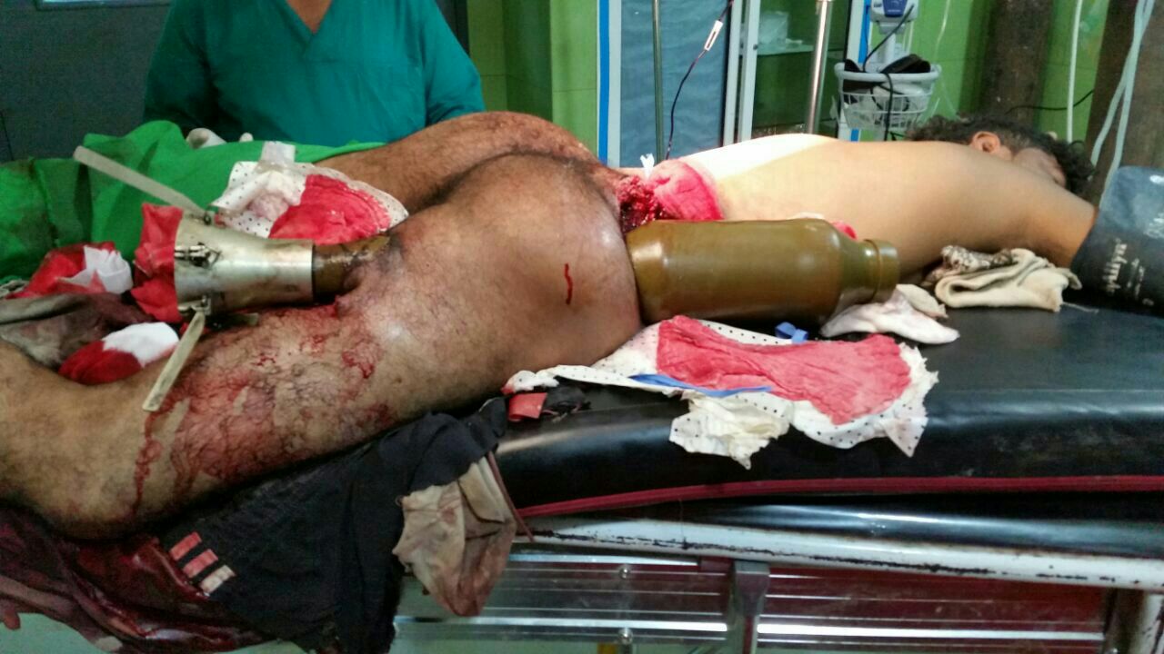 حيث قال الدكتور : دخل الصاروخ من العربه ولم ينفجر وبعدها دخل في اعلى رجل المريض واسفل الحوض. يبدو انه كان جالس على الكرسي. والحمد لله لم ينفجر.