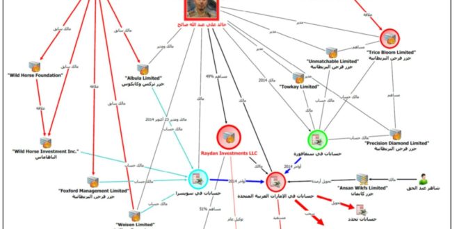 وكشف فريق الخبراء عن أن خالد علي عبدالله صالح قد عين شقيقه الأكبر ” احمد علي ” كشخص مفوض للتوقيع على حسابات شركة ( ترايس بلوم ليميتد ) وأن خالد هو المساهم الوحيد في شركة رابعة مسجلة في جزر فرجن البريطانية تدعى ( توكاي ليميتد )