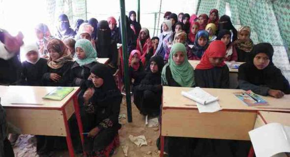 افتتح ائتلاف صنعاء للإغاثة والتنمية، أول مدرسة للطلاب النازحين في مخيم وادي الخانق بمديرية نهم، شمال شرق العاصمة صنعاء، مكونة أربعة فصول “خيام”.