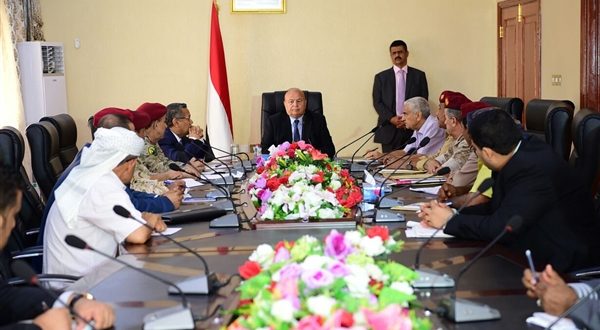 جاء ذلك خلال اجتماعه بعدد من القيادات العسكرية بحضور رئيس الوزراء الدكتور احمد عبيد بن دغر ونائب رئيس الوزراء وزير الداخلية اللواء حسين عرب وقائد المنطقة العسكرية الرابعة اللواء فضل حسن والقيادات العملياتية والقوى البشرية والمالية والانشائية والتموينية وغيرها