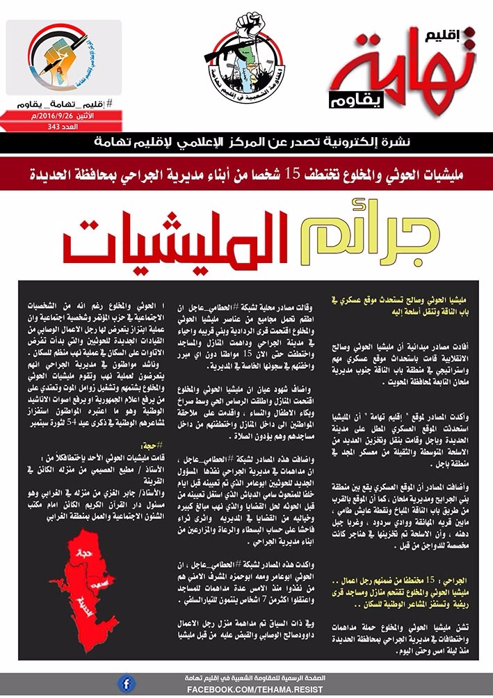 رفع العلم الوطني وايقاد شعلة سبتمبر يتسبب في اعتقالات واسعة بالمحويت من قبل مليشيا الحوثي الارهابية