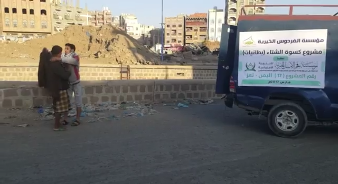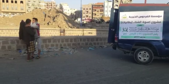 بتمويل منظمة الدعوة الاسلامية – مكتب دولة قطر الشقيقة وبإشراف مؤسسة الفردوس الخيرية بعدن دشنت مؤسسة فجر الأمل الخيرية للتنمية الاجتماعية وضمن حملتها الإغاثية التي أطلقتها منذ بداية الاحداث توزيع مشروع البطانيات والملابس الشتوية بمحافظة تعز للنازحين ومرضى المستشفيات والنائمين على الأرصفة والشوارع العامة في مدنية تعز.