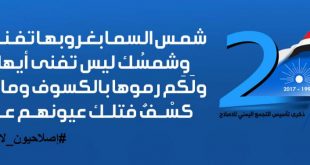 ..اقليم تهامة – خاص … بعث شباب التجمع اليمني للاصلاح بمحافظة المحويت برسالة شكر وولاء وتجديد العهد في مواصلة النضال حتى تحرير اليمن بعثوا بها الى رئيس هيئة حزبهم بعد خطابه ليلة امس في الذكرى 27 لتأسيس الاصلاح اليكم نصها : إلى استاذنا رئيس الهيئة العليا للتجمع اليمني للإصلاح وبعد …