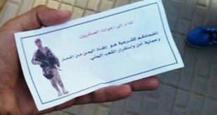 أكمل القراءة »مقاتلات التحالف تلقي منشورات في مناطق وسط صنعاء تدعو المواطنين للتعاون من أجل تخليص اليمن من مليشيات الحوثي …صورة